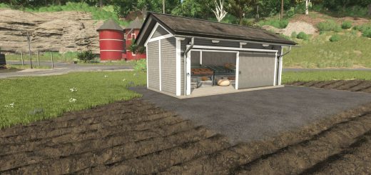 Three bulk material places at which grain, but also before the harvest, machines can be parked. These three bulk areas are separated by solid concrete walls, which are the same as the foundations of the hall.