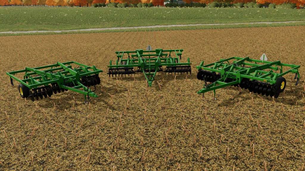 The John Deere 712 Mulch Tiller is a tillage tool manufactured by Deere & Co. from 1983-1988. It is a chisel plow with additional disk or coulter blades on the front to allow the sizing of residue while also performing deep tillage. This became important in the later part of the 20th century as crops such as corn increased in yield and, in turn, crop residue. As the name suggests, this tool lets you mulch and till your field in the same pass, allowing you to do two jobs at once. This mod also has options for different working widths to allow you to utilize all the horsepower availble on your farm. It also has other options for rear weights and warning equipment. Work right behind your combine with this 80’s tool today!