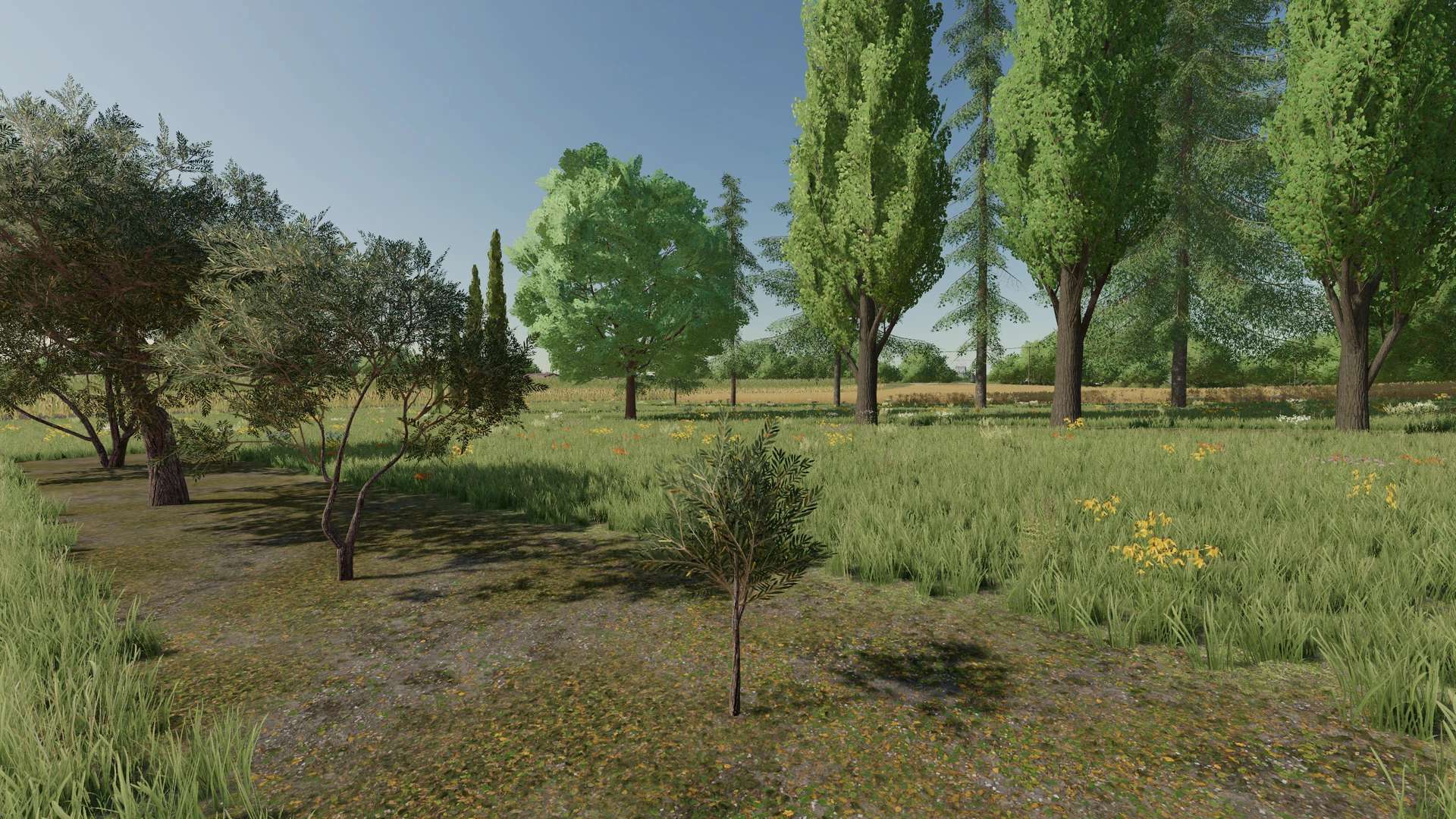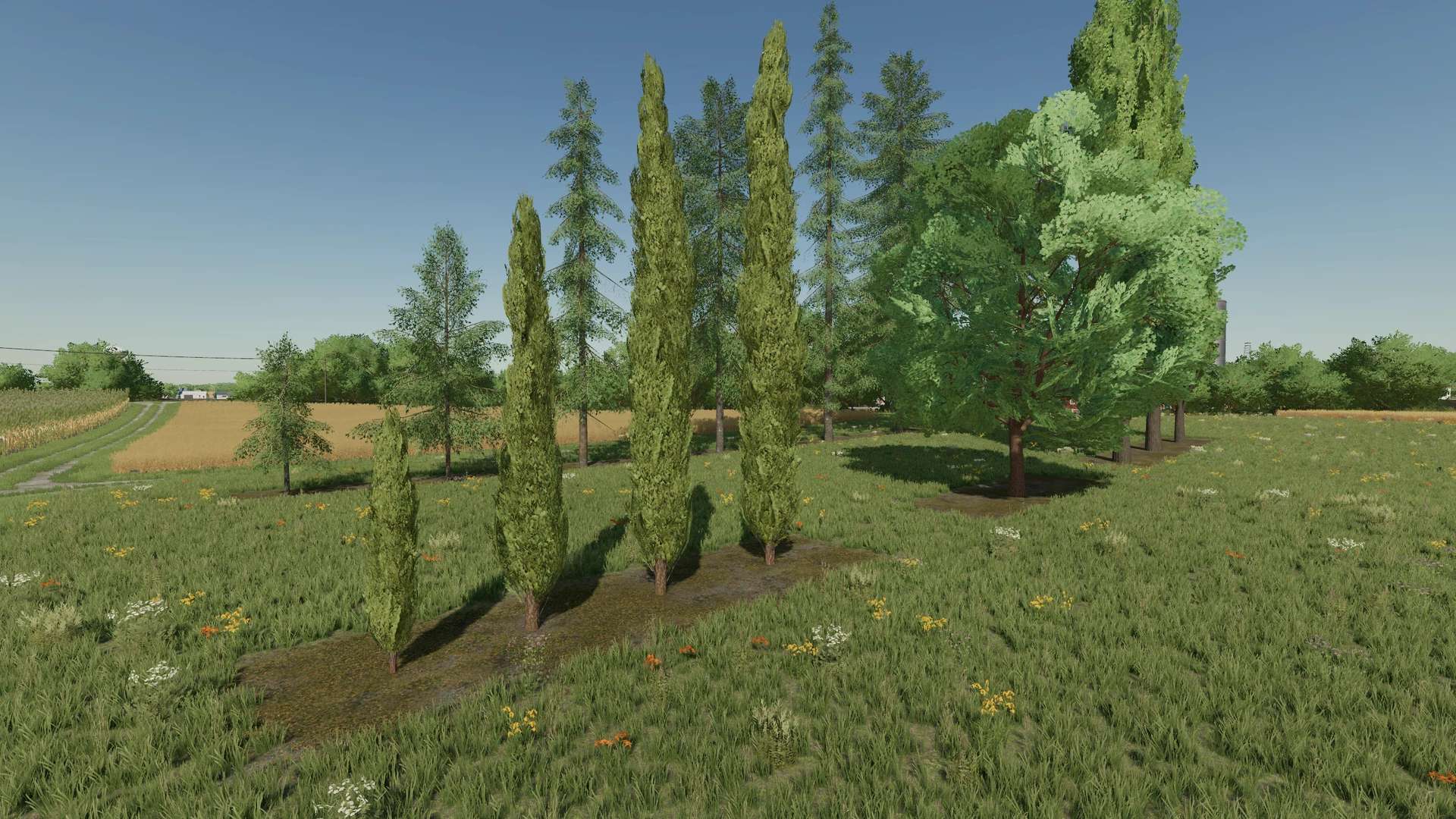 This mod supplements the landscaping of the standard map “Elmcreek” with the missing trees and plants.