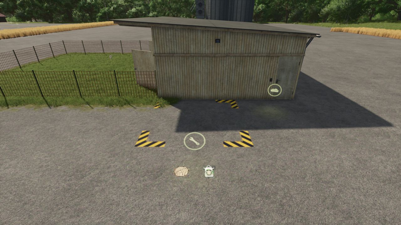 Place over the pallet spawn at the animal pen. Free mode may need to be activated when placing. When placing the invisible version the pallet loading space is the same size as the extra large warning strips.