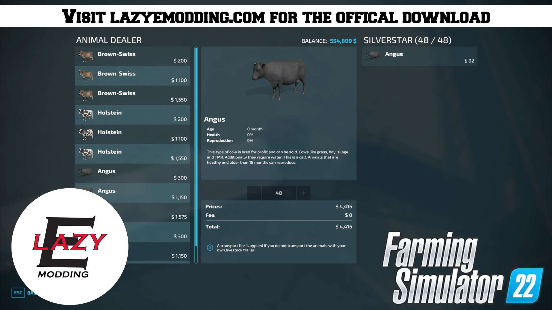 I decided to edit the in-game Wilson Silverstar and add a more realistic approach to it. I based the amount on the gross weight of the trailer in real life and used 1200lbs weight to decide that 48 head of cattle will be about right.