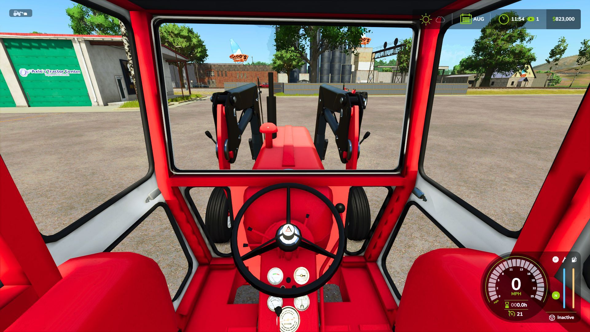 A work in PROGRESS. We are hoping to finish soon. Basic functions work A.T.M.. The normal trailer hitch does work. The three point hitch does not work A.T.M.. The steering wheel is still being developed so it has a place holder for now. The front wheels turn but the front axle is still being worked on so they turn but not 100% on the axle as they should.