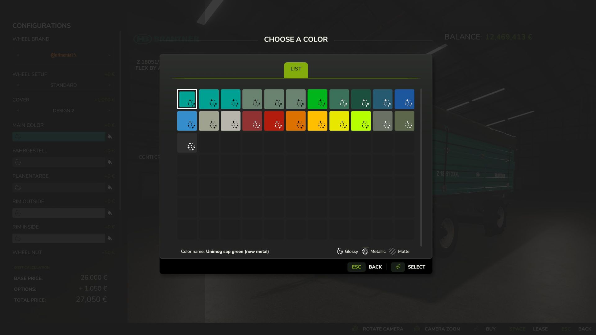 – Selectable color for the entire set of rims (inner and outer rims, wheel hub, wheel bolts)