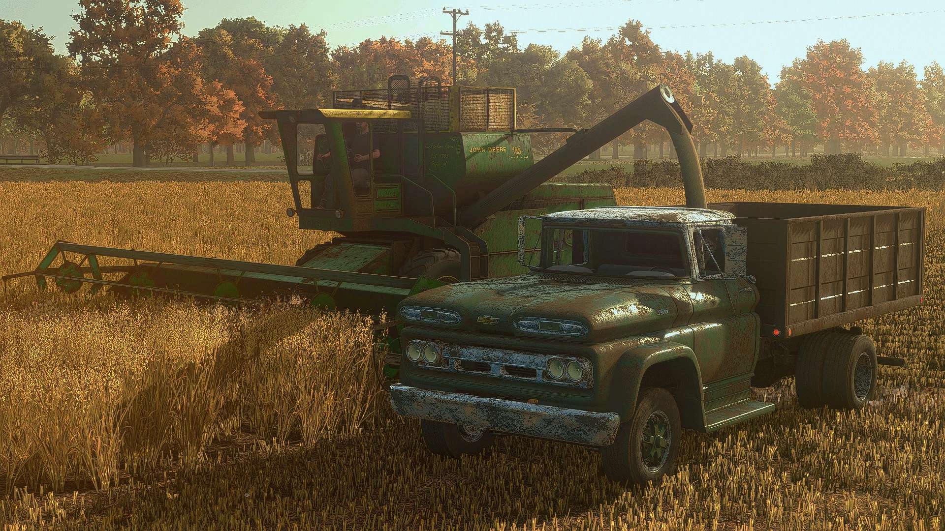 It includes a flatbed that is liftable by mouse controls. It also includes a grain extension for it.