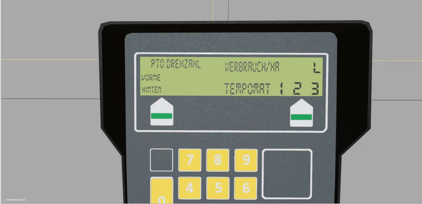 Implement on 3-point linkage front: Fill volume in liters and percentage