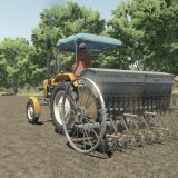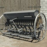 Old Polish horse-drawn seeder converted to 3-point hitch.