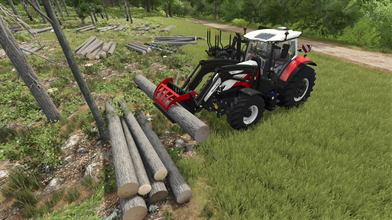 Front timber blade is perfect for loading Tree trunks or for piling. Thanks to its size, even several Tree trunks can be gripped.