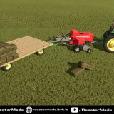 A small square baler with an ancestry going back decades, the Massey Ferguson 1840 traces its roots back to the inline baler design pioneered by Hesston. This baler is a revision of the basegame Massey 1840 that incluedes a number of additional features, including the ability to pull a wagon with the rear hitch.
