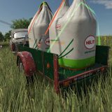 It is a Polish home-made car trailer with wooden sides. It can be used to transport bulk materials, bags, pallets and bales. It has a color configuration of the frame, boards and rims. It has working lighting. The tailgate in the unfilled configuration opens using Interactive Controls.