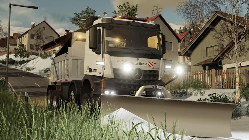 The winter service was built on a Mercedes Actros frame. Furthermore, minor adjustments were made to the truck, such as the ls19 lighting system. There was also a lot of deco adapted stickers and new logos.