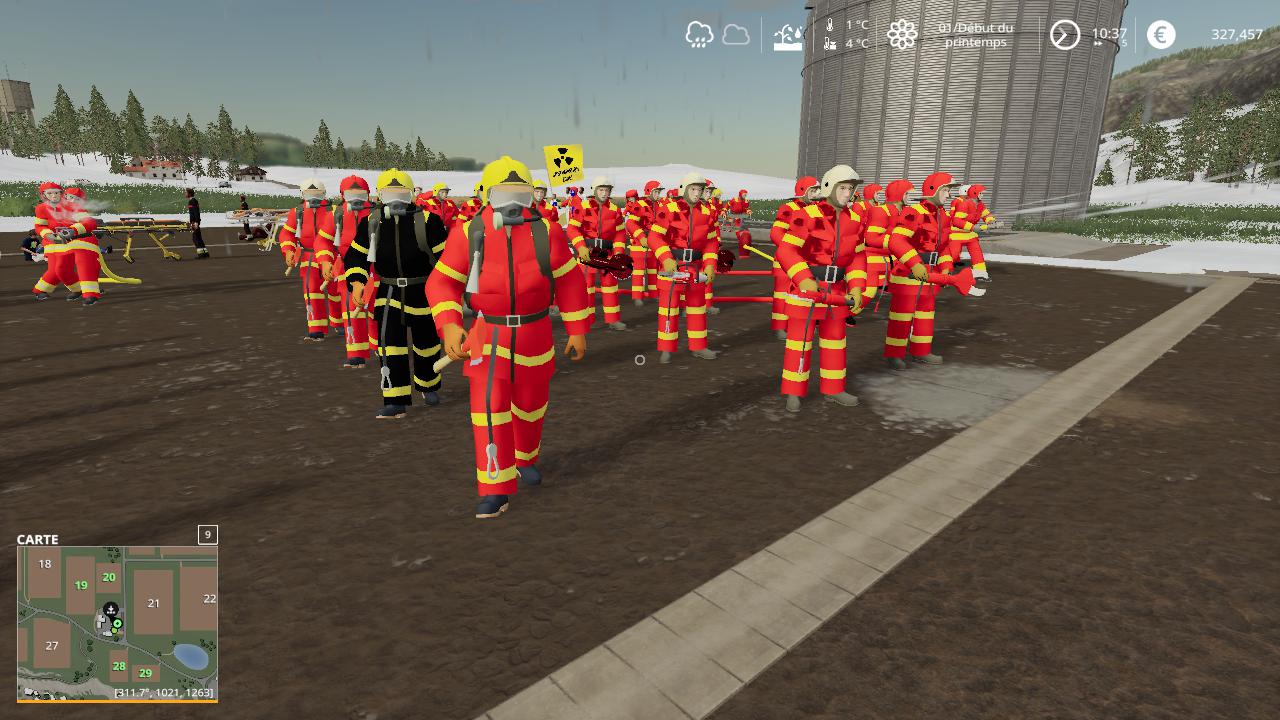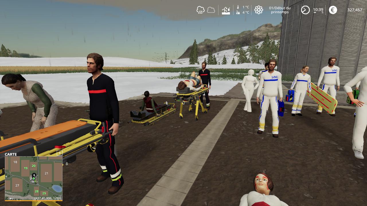 Hello everyone here is the french rescue characters placeable for fs19 there are in this mega pack the characters firefighters, police, gendarmerie, samu, and rescuers with the different victims.
